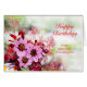 Une carte d'anniversaire pour votre petite-fille. Fleurs d'hellebore roses, également appelées rose de noël, dressées contre un arrière - plan de feuilles rouges de l'arbuste cotinus.