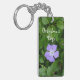 Une petite fleur violette fleurit parmi les feuilles verts de ce ramepeur. Le texte est personnalisable si vous souhaitez modifier le nom ou le message.