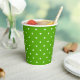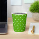 Papier Party Becher mit winzigen weißen Herzen Muster auf hellgrünem Hintergrund. Vergewissern Sie sich, dass Sie die Erholung der kleinen Herzen und der fetten Farbpapiersammlung auskosten
