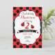 Une invitation rouge et noire classique d'anniversaire de point de polka pour votre petite dame "insecte" ! !