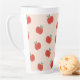 Une grande tasse blanche avec des petites pommes rouges à la main