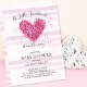 Invitation de Baby shower Little Sweetheart Girls avec un coeur de parties scintillant rose sur un arrière - plan à rayures rose et blanc avec un dos assorti.