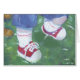 fermez-vous des pieds rouges-sneakered de l'enfant en bas âge suivis des pattes de chiot : acrylique sur des canvis