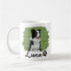 Celebrate your favorite four-legged friend with this personalized Border Collie photo mug! Featuring a black-and-white Border Collie sitting in a grassy field, framed by a creative green brush-stroke border for a modern artistic touch. The name “Luna” appears in bold script lettering with a small paw icon for added charm.