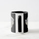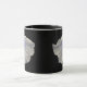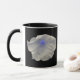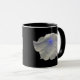 Diese hübsche Tasse zeigt ein Foto einer Petunia-Blume, die manipuliert wurde, um die Mitte der Blume hell blau zu machen. Die äußeren Blütenblätter sind weiß, und die Adern, die aus der Mitte der Blume herauslaufen, leuchten ebenfalls blau. Die Blume ist auf schwarzem Hintergrund, um sie zu stimulieren. Das Design wird auf einer Tasse im Stil eines Schwarzen Ringers gezeigt, ist aber auch in vielen anderen Stilen und Farben von Tasse erhältlich.