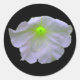 Dieses hübsche Rundaufkleber-Blatt zeigt ein Foto einer Petunia-Blume, die manipuliert wurde, um die Mitte der Blume hell grün zu machen. Die äußeren Blütenblätter sind weiß, und die Adern, die aus der Mitte der Blume herauslaufen, leuchten auch grün. Die Blume ist auf schwarzem Hintergrund, um sie zu stimulieren.