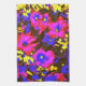 Ein lebendiges blauer, lila, roter, gelber und schwarzer Pop-Design von Petunias.