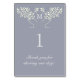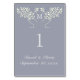 Eine moderne Hochzeitskarte mit einer Lebensgrafik. Eine Tischnummer, die sich auf der Hochzeit befindet. Zwei Baumzweige verwoben mit blassgelben Blätter auf einem mittelgrauen Hintergrund, um sich mit einem Monogramm anzupassen.