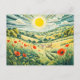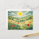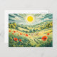 Pfad durch Mohnfeld mit fliegenden Sparrow Postkarte