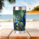 Die atemberaubende Pfauenfederkonstruktion verleiht dem Insulated Tumbler eine prachtvolle Farbe von Blau, Grün und Gold, die an den majestätischen Pfauensturm erinnert.