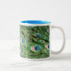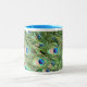 Lustige Pfauenfedern in lebendiger Blues und Grüntönen sind ein exotischer Ausdruck des Designs von MARCELLE. Blauer Tasse mit schönem Design. Pop in einer Tüte Pralinen, oder Geleebohnen und geben Sie diesem besonderen jemanden.