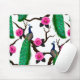 Pfauenvögel, die auf Ästen und rosa Kamelien-Blume herumpfauern, dieses Muster wird in Fotoshop handgezeichnet.