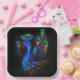 Hellblauer Körper mit bunten Federn gegen Schwarz schafft einen Single Funky Vogel.