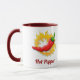 Pfeffer aus rotem Chili mit Flammenkreis. Benutzerdefinierter Text auf beiden Seiten.