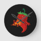 Pfeffer mit rotem heißem Chili mit Flamme Runde Wanduhr