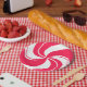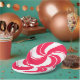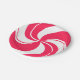 Ein heller roter und weißer Pfefferminzstrudelentwurf auf einem Pappteller. Vervollkommnen Sie für Partys mit Losen der Süßigkeit.