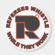Schiedsrichter pfeifen wirklich, während sie arbeiten. Schriftzug R Logo mit Pfeifform. Passen Sie mit einem Namen und/oder einer Nummer oder einem anderen farbigen Hintergrund an, wenn Sie möchten, indem Sie auf "Dieses Design anpassen" klicken.
