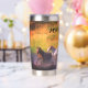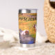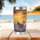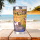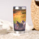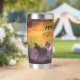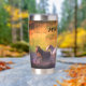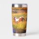 Thermal Stainless Steel Tumbler, die mit Namen personalisiert werden kann. Design zeigt eine Vielzahl von Pferden, die an einem sonnigen Tag in den Fluss eintauchen.
