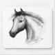 Skizze eines hellen Pferdes, schwarze Tinte auf hellem Hintergrund. 2014 ist das Jahr des Pferdes, viel Glück für alle!