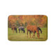 Diese Tierbadmatte kennzeichnet Kunstphotographie einer reizenden ländlichen Herbstlandschaft mit den Pferden, die das grüne Gras weiden lassen. Ein Hügel taucht hinter ihnen in den prachtvollen Herbstlaubfarben von Rotem, von Orange, Gold, Gelb, Braun und Grün auf.