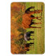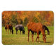 Dieser flexible Magnet zeichnet sich durch die kunstvolle Fotografie einer schönen ländlichen Herbstlandschaft aus, in der Pferde das grüne Gras weiden. Hinter ihnen thront ein Hügel in den prächtigen Farbtönen Rot, Orange, Gold, Gelb, Braun und Grün.