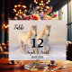 Hochzeitskarte mit zwei Pferden, die im Schnee glücklich laufen. Wunderschön für eine Winterhochzeit für Pferdefreunde.