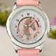 Kinderuhr aus Edelstahl mit rosa Lederarmband