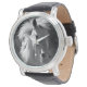 Uhr, Vintage Männeruhr mit schwarzem Lederarmband