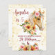 Palomino Pferd mit Sonnenblumen und rosa Blume Blumenmädchen Geburtstagsparty Einladung Vorlage. Schönes Aquarellhorn-Portrait, schön für Pferdeliebhaber.