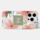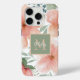 Pfirsich und grüne Aquarellblume mit Monogramm Case-Mate iPhone Hülle