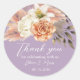 Fügen Sie eine bezaubernde Touch mit diesem Pfirsich und lila Blumen Hochzeit Dank Ihnen Aufkleber. Mit zarten Aquarellfarben, Pampas-Gras und einem weichen Lavendeluntergrund eignet sich dieses Design perfekt zum Abdichten von Gefälligkeitstaschen, Geschenken oder Umschlägen. Ein schöner rustikaler und boho Akzent für Ihre Hochzeitsfeier.