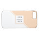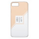 Peach und weiß geometrische iPhone 8/7 Gehäuse mit Monogramm. Die Vorderseite besteht aus zwei diagonalen Streifen, einem Pfirsich und einem Weiß, die die Karte in zwei Dreiecken trennen. Ein weißes Quadrat befindet sich in der Mitte mit dem Monogramm.