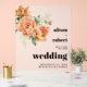 Mit diesem mattierten, lichtdurchfluteten, lichtdurchfluteten, lichtdurchfluteten Akrylyszeichen, das für eine warme und einladende Atmosphäre geschaffen wurde, stärken Sie die Atmosphäre für Ihre Hochzeitsgäste. Dieses Schild mit zarten pfirsichfarbenen Rose und Pfirsichbäumen, weißen Blüten und schlauen grünen Blätter in der oberen links Ecke strahlt Eleganz und Charme aus. Das durchsichtige Design des Hauses sorgt für eine moderne Touch, während die kühne Typografie den Gast herzlich zum Feiern Ihres besonderen Tages einlädt.