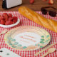 Pfirsichrosa Weißbuch Teller für Bridal Brunch Mittagessen, Brautparty, Hochzeit, Brunch und Bubbly.