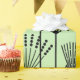 Dieses Verpackungspapier hat ein modernes Design von Pflanze aus Linien, Kreisen, Dreiecken, Rechtecken und Quadraten in schwarz auf grünen Hintergründen.