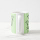 Diese Tasse hat ein modernes Design von Pflanze, die aus Linien, Kreisen, Dreiecken, Rechtecken und Quadraten in schwarz auf grünem Hintergrund bestehen.