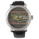 Uhr, Vintage Männeruhr mit schwarzem Lederarmband