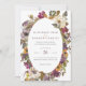 Freuen Sie sich auf eine schöne Hochzeitseinladung mit einem Arrangement aus Pflaume und Senf-gelben Aquarellblumen und Grünpflanzen.