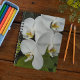 Taille standard, carnet à spirale pour la maison, l'école ou le bureau qui comporte à la fois des couvertures avant et arrière avec une photo de fleurs d'orchidées Phalaenopsis blanches, communément appelé Moth Orchids. Un joli design floral ! Sélectionnez vos options de style de carnet.