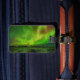 Dekoriert mit einem Bild von starkem Polarlicht über Alaskas Prinz William Sound. von Ted Raynor