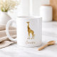 Eine phantastische Kaffee-Tasse, in diesem Design ist eine goldene Giraffe mit Ihrem Namen in kursivem Schriftart verfasst. Personalisieren Sie Ihre noch heute!