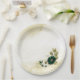 Schöne smaragdgrüne Elfenbein-Blume mit goldenen Blätter botanischen Hochzeitspapier Teller. Die Einzelheiten des Glitzer werden simuliert. Für weitere Informationen klicken Sie bitte auf die obige Sammlung oder kontaktieren Sie mich.