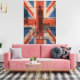 Phantastischer cooler angesagter alter Holzgrunge U.k. Union Jack Flag, Antique Effects, London Sehenswürdigkeiten Sketch, Big Ben, Telefonbox, Roter Bus, London Street, Vintag Schriftart London Wort, Schwarz, Weiß, Rot, Blau verblasste Farben, Bild drucken.