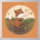 Eine niedliche Abbildung eines Fuchs, der unter den bunten Blätter im Herbst Kaffee trinkt