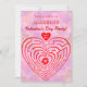 Rosa, blumengeschmückter Hintergrund mit einem herzförmigen Labyrinth in Rot. Die Einleitung lautet: Sie sind zu einem phantastischen Valentinstag Party eingeladen! Das ist ein großartiges Design für Partys am Valentinstag oder Valentinstag. Wenn Sie ein süßes Baby haben, das am 14. geboren war, können Sie einen zusätzlichen Text hinzufügen, um jedem zu sagen, wie alt Ihr kleines Mädchen sein wird. Das herzenförmige Labyrinth ist ein praktikables Puzzle, das den Spielen der Kinder Spaß macht.