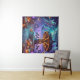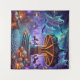 Phantom Carousel Halloween Tapestry Unter einem sterngesprenkelten Himmel verschleiert in Nebel, ein Spuk Karussell spinnt in unheimlicher Stille. Geister driften langsam durch die Luft, ihre durchsichtigen Formen leuchten vor dem Hintergrund von flatternden Bäumen und flackernden Laternen. Fledermäuse schwitzen sich über die Decke und weben durch die Schatten, während Jack-o'-Laternen aus jeder Ecke grinsen und warmes orangefarbenes Licht über den Kopfsteinboden werfen. Ein Rundmuster, das vor dem Karussell geätzt wurde, deutet auf vergessene Rituale und spektrale Ansammlungen hin. Die Atmosphäre ist festlich, aber vorausschauend - eine surreale Mischung aus Kinderwunder und übernatürlichem Rätsel.