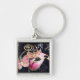 Eine rosa und goldene Mardi-Gras-Maske mit Schmetterlingen um die Augen.