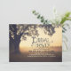 Invitation à la douche nuptiale avec cordes de lumières sur les branches du vieux arbre. Joli invitation élégant et créatif pour la campagne rustique et la douche nuptiale de jardin avec des lumières scintillantes, lanternes et arbre.