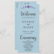 Faites monter votre cérémonie de mariage à des hauteurs cosmiques grâce à notre programme de mariage céleste de la nuit Bleue Lumière. Ce programme enchanteur est conçu pour les couples à la recherche d'une touche céleste, créant une atmosphère à la fois unique et mystique. Les phases bleues modernes de la lune sur fond bleu clair évoquent un sentiment d'émerveillement céleste, ce qui en fait un choix idéal pour ceux qui veulent que leur mariage reflète la magie du cosmos. La couleur bleu clair ajoute un élément serein et apaisant, donnant le ton d'une célébration vraiment céleste de l'amour. Au verso du programme, vous trouverez une liste soigneusement arrangée de la fête de mariage, présentée en noir et gris classique en utilisant une simple police de caractères de bloc. Les mots "Welcome", "Ceremony" et "Wedding Party" sont magnifiquement mis en évidence dans une police de caractères décorative, ajoutant une touche d'élégance et de romantisme à l'ensemble du design. Notre programme de mariage céleste de la nuit Bleue Lumière n'est pas seulement une pièce de papeterie, c'est une invitation à une célébration céleste où l'amour et le cosmos s'alignent. Que vous planifiez un mariage sur le thème céleste ou que vous souhaitiez simplement un programme qui se démarque, ce design céleste est le choix idéal. Laissez les phases de la lune illuminer votre histoire d'amour et transformer votre jour de mariage en un chef-d'oeuvre céleste. Choisissez notre programme de mariage céleste Lumière Bleue Lune pour un mariage qui est vraiment hors de ce monde.
