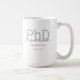 Eine Doktortitel-Tasse, die den Namen des Absolventen, das Studiengebiet und das Datum des Abschlusses enthält. Die Tasse enthält den Namen in einem Schriftart mit Schriftzeichen und einem Schwarz-Grauen Design. Es ist großartig wie ein Sake oder ein Gastgeschenk. Fügen Sie einfach die Informationen des Absolventen hinzu, fügen Sie diese Tasse in Ihren Warenkorb, und herzlichen Glückwunsch zu diesem wichtigen Meilenstein! Keepake Black Gray Name PhD Abschluss Kaffeemaschine Tasse Holidayday Design | ©Melissa Patton - Designer Nicht Ihr Stil, aber Sie kennen jemanden, der das Liebe? Verwenden Sie die Freigabe-Taste, um dieses Produkt mit ihnen zu teilen. Oder, holen Sie es für sie als ein besonderes Geschenk.